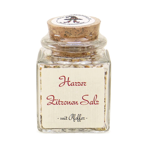 Das Harzer Zitronen Salz -mit Pfeffer- ist spritzig und zugleich würzig. Hier trifft Siedesalz auf Zitronenschalen und schwarzen Pfeffer. Dieses Salz kann zu Tisch in der Salzmühle verwendet werden, aber auch zum Kochen ist es ein Genuss. Es passt zu Gemüsepfannen, gegrillten oder gebratenen Lachs und zu verschiedenen Nudelgerichten. Diese Salzmischung ist das Experimentieren in der Küche auf alle Fälle wert. Hergestellt und abgefüllt in liebevoller Handarbeit.