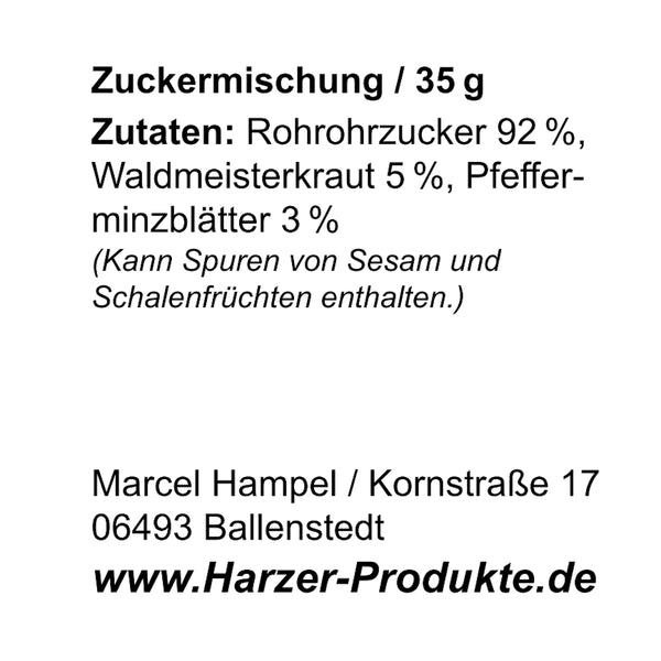 Harzer Waldmeister Zucker mit Pfefferminz - aus unserer eigenen Produktion.